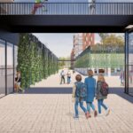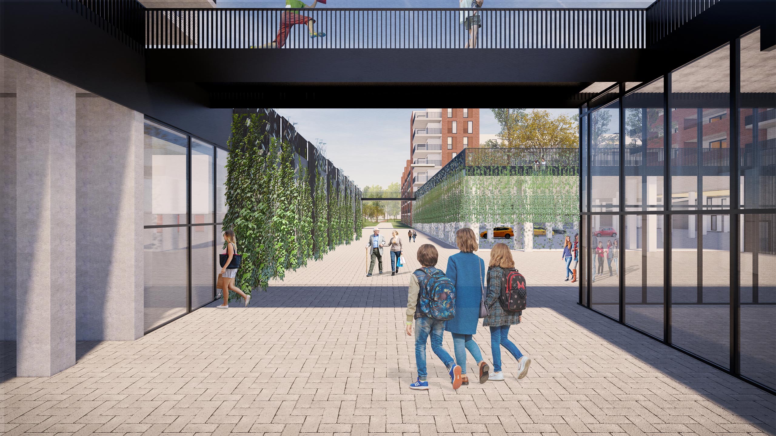 Nous avons souhaité le mariage entre les Ateliers Marvan, symbole de la prospérité économique de la ville de Binche avec la confection textile, et les Remparts de Binche, éléments intrinsèques de la ville et situés à proximité immédiate du site à la Rue Carlo Mahy.